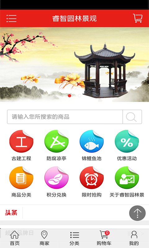 睿智園林景觀是一款實(shí)用信息平臺(tái),集商城、品牌街、積分兌換、優(yōu)惠活動(dòng)團(tuán)購活動(dòng)和熱賣等功能于一體,真實(shí)、高效地讓您生活更簡(jiǎn)單!