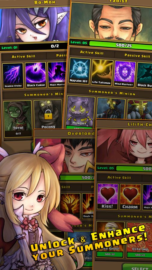 點擊召喚師是移動RPG塔進攻動作卡片對戰(zhàn)游戲Android和iOS用戶。實時快節(jié)奏的敲擊戰(zhàn)斗!這場比賽的重點是圍繞輕敲屏幕反復(fù),所以在召喚爪牙來攻擊怪物。
