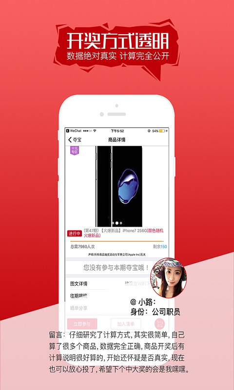 大眾奪寶app是一款手機(jī)一元購物平臺,所有商品只需一元就能購買,對你沒有聽錯(cuò),一元云購熱門潮流商品,現(xiàn)在下載大眾奪寶活動(dòng)多多,立即體驗(yàn)一元給你帶來的無限驚喜。【軟件特點(diǎn)】