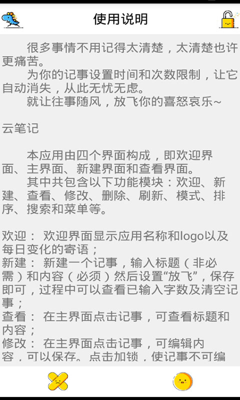蜂窩日記不僅僅是您最私密的心情日記本,同樣也是一款筆記本、記賬本。我們陪伴您記錄每一份觸碰心靈的感受,記錄生活上的點(diǎn)滴。簡(jiǎn)潔大方實(shí)用的界面讓你輕輕松松實(shí)現(xiàn)分類管理,讓您的生活變得井井有條,便捷的操作讓你不錯(cuò)過(guò)每個(gè)重要時(shí)刻!