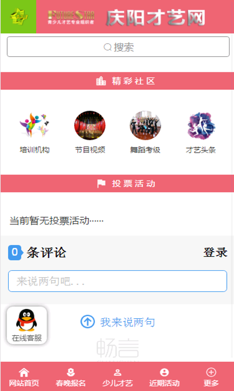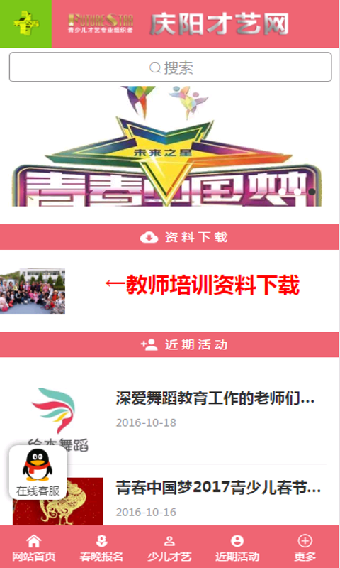 搭建培訓(xùn)結(jié)構(gòu)數(shù)字化展示平臺,集才藝培訓(xùn)、才藝展示、才藝交流、藝考咨詢、賽考技能、商業(yè)演出、創(chuàng)編排練、音像制作等功能于一身。慶陽才藝網(wǎng)app致力于青少兒藝術(shù)教育培訓(xùn),集結(jié)全市的優(yōu)秀師資力量,將藝術(shù)培訓(xùn)、能力培養(yǎng)、趣味培養(yǎng)、排練演出和實踐交流相結(jié)合,為廣大青少兒提供優(yōu)質(zhì)、專業(yè)的藝術(shù)教育服務(wù),為家長提供咨詢服務(wù)及交流平臺,為全市熱愛藝術(shù)、有較高藝術(shù)天賦和懷揣明星夢想的孩子們提供展示才華的機會和舞臺。