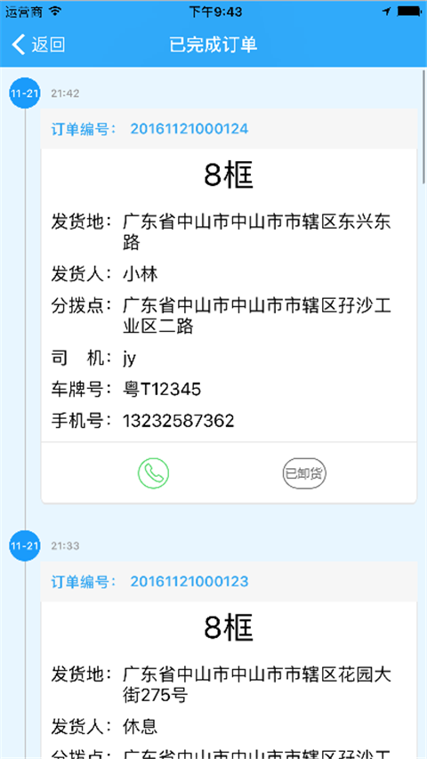 5、司機送達貨物后訂單完成,可在已完成訂單里查看