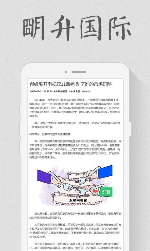明升國(guó)際app是一款網(wǎng)絡(luò)牛人、網(wǎng)絡(luò)公司動(dòng)態(tài)、電子商務(wù)、網(wǎng)絡(luò)游戲資訊閱讀類應(yīng)用,用戶通過明升國(guó)際app隨時(shí)隨地瀏覽各種有用的網(wǎng)絡(luò)牛人、網(wǎng)絡(luò)公司動(dòng)態(tài)、電子商務(wù)、網(wǎng)絡(luò)游戲等資訊信息,發(fā)現(xiàn)更多互聯(lián)網(wǎng)動(dòng)態(tài)。