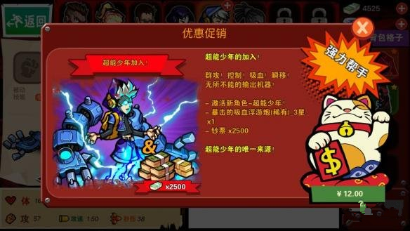 超能少年需要氪金12獲得,還是很強(qiáng)的角色,氪了之后配合拳手奶媽槍手,三遠(yuǎn)程操作可以輕松很多。
