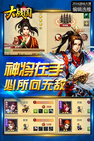 年度策略型手游大作《大戰(zhàn)國》2016煥新登場,,帶你開辟成王之路!為策略游戲用戶量身打造的誠意之作,攻城略地,招賢納士,稱王稱霸,坐擁江山美人!五大必玩理由