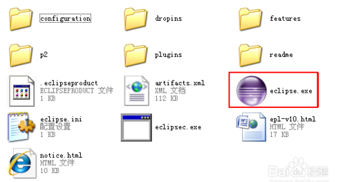 解壓完畢后即可使用,進(jìn)入文件夾,紅框如圖所示就是eclipse的啟動(dòng)程序