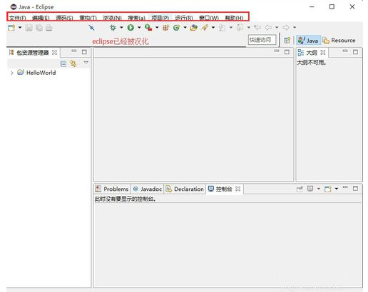 重啟eclipse,在打開eclipse,會(huì)發(fā)現(xiàn)eclipse已經(jīng)被漢化了。