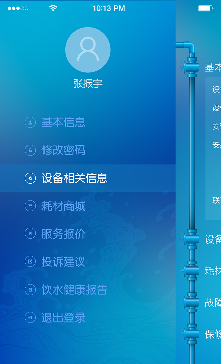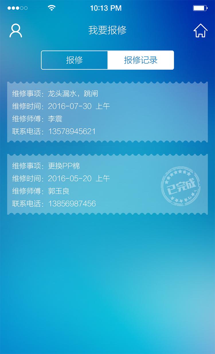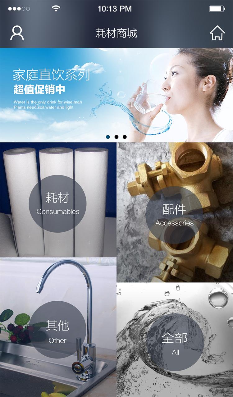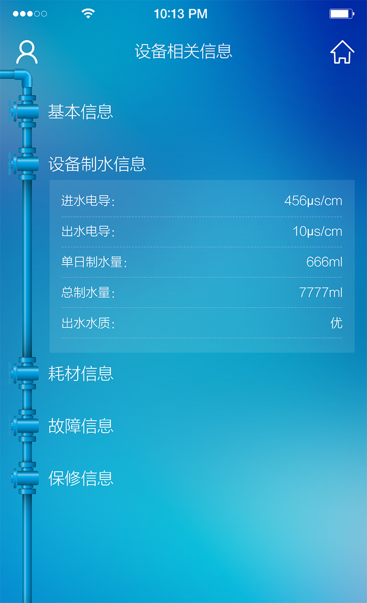 用戶可通過手機APP隨時看到設(shè)備的相關(guān)的制水信息、故障信息等;并能看到設(shè)備相關(guān)耗材的壽命信息;并能夠?qū)崿F(xiàn)通過手機APP直接提交設(shè)備報修信息,瀏覽網(wǎng)上商城等。