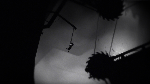 《Limbo》的難度著實(shí)不低。游戲基本上沒有任何的引導(dǎo)與提示,黑白的場景極容易讓人忽略關(guān)卡中的陷阱和道具,而謎題的設(shè)置與警示往往直接融入自然之中,比如巨石滾動之前,就會有碎石子先落下。因此想要順利過關(guān),就需要玩家有敏銳的觀察力和強(qiáng)大的邏輯推理能力,看似走投無路之時,不妨回過頭,看看場景中有哪些地方顯得突兀,這些細(xì)微的不同尋常之處,往往就是解開謎題的關(guān)鍵。否則,你就只能在黑白的世界中不斷徘徊。