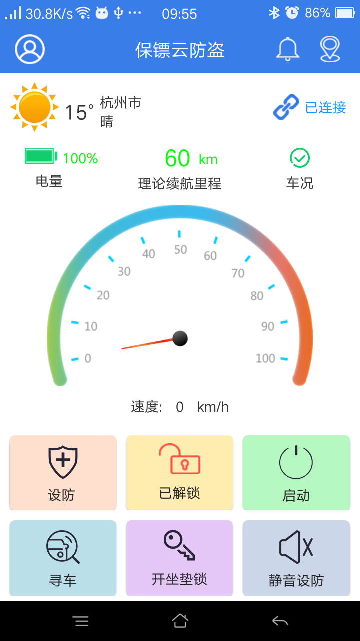 云防盜app是一款簡(jiǎn)單實(shí)用的電動(dòng)車報(bào)警系統(tǒng)軟件,車主通過云防盜可以隨時(shí)檢測(cè)電動(dòng)車,查看車子的功能以及故障,同時(shí)還具備控制報(bào)警器功能,幫助廣大車主輕松出行無憂!