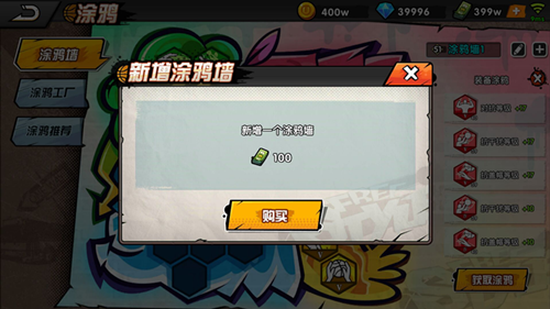在涂鴉界面的上方,可以點(diǎn)擊畫筆按鈕編輯涂鴉墻的名稱,點(diǎn)擊加號(hào)按鈕可以新增一個(gè)涂鴉墻,新增涂鴉墻需要花費(fèi)100點(diǎn)卷,點(diǎn)卷花費(fèi)是固定的,不會(huì)隨著涂鴉墻數(shù)量的增多而增多。