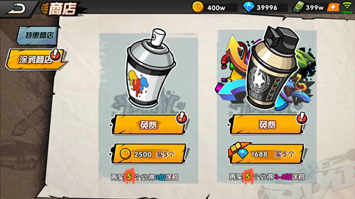 當(dāng)我們擁有足夠的涂鴉噴漆時(shí),點(diǎn)擊屏幕左側(cè)的的涂鴉工廠,就可以看到涂鴉種類、等級(jí)的分類,選擇想要合成的涂鴉,就可以看到合成這個(gè)涂鴉需要花費(fèi)的涂鴉噴漆,點(diǎn)擊合成按鈕就可以獲得這個(gè)涂鴉,等級(jí)越高的涂鴉合成所需要的涂鴉噴漆就越多。