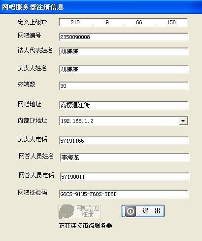 網(wǎng)吧校驗碼:由網(wǎng)吧向市文化管理部門申請,對應(yīng)網(wǎng)吧編號發(fā)放