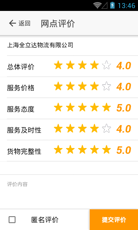 4)針對該郵政/快遞網(wǎng)點(diǎn)打分和發(fā)表評論。