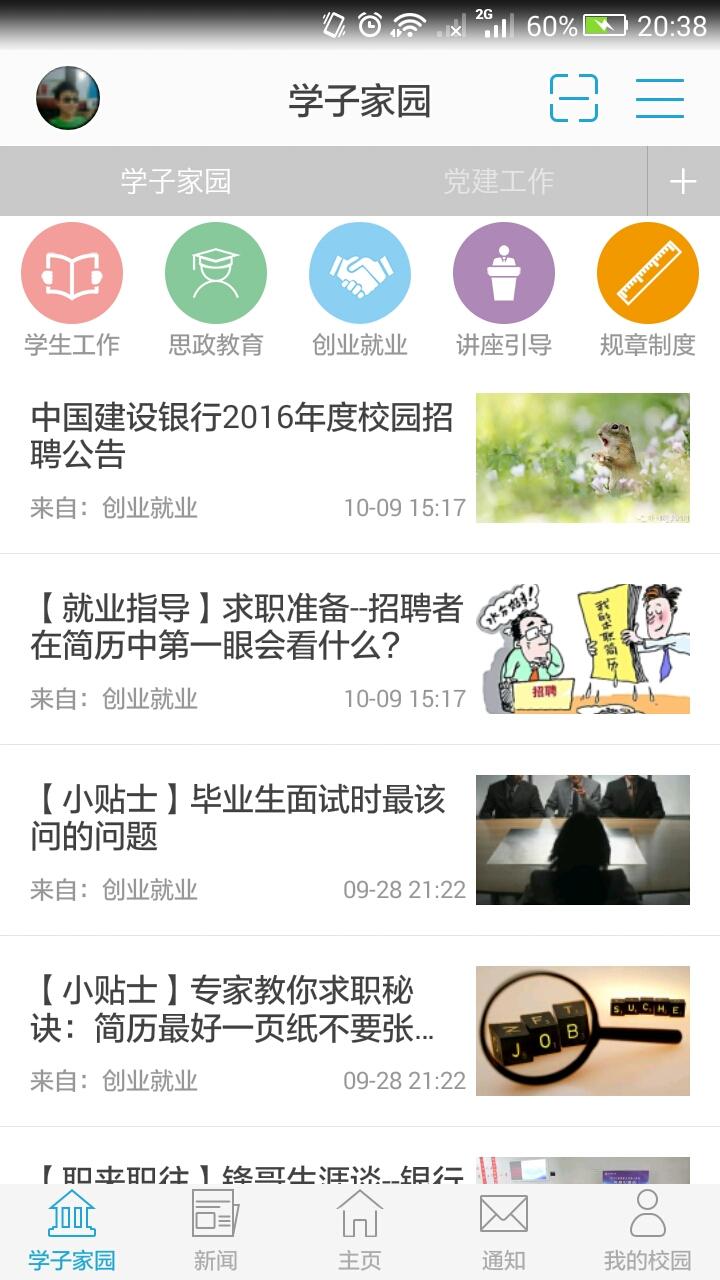 1、【學(xué)子家園】:根據(jù)用戶選擇的興趣主題進(jìn)行相關(guān)校園新聞的實(shí)時(shí)推送,以及黨建相關(guān)信息的展示,讓用戶時(shí)刻把握校園第一手信息。
