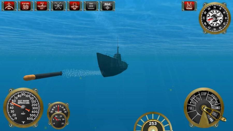 作為一類在水面下進(jìn)行作戰(zhàn)的艦艇,潛艇與傳統(tǒng)艦艇不同,潛艇注重的是隱蔽性,除了可以選中敵方潛艇投擲各種魚雷進(jìn)行射擊,玩家還可以隨時(shí)控制我方潛艇潛入海底躲過敵方攻擊。游戲真實(shí)模擬了白天黑夜,玩家將在屏幕上看到當(dāng)前時(shí)間、潛艇運(yùn)行時(shí)速、馬力等要素,還能收集裝備武裝你的潛水艇。