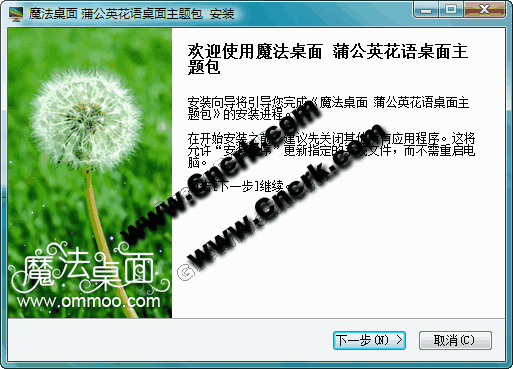 蒲公英花語電腦桌面主題,用一張完整的蒲公英圖片做壁紙,朦朧的綠色草地背景更凸顯的蒲公英夢幻的氣息,就像它的花語——停不了的愛。只要有風吹過,它就將隨著微風踏上它停不了的尋愛旅程