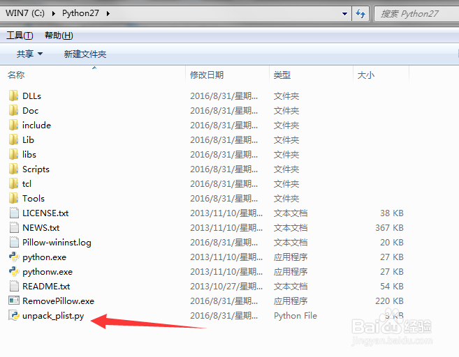 4、創(chuàng)建一個文本,修改后綴為py,建議命名:unpack_plist.py,將unpack_plist.py放到你Python27安裝目錄里
