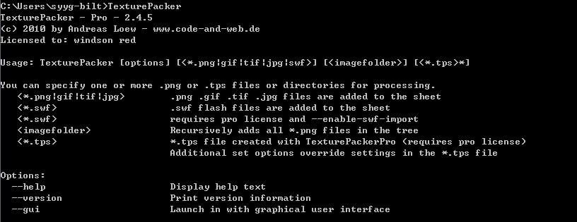4.運行cmd,輸入TexturePacker大家應(yīng)該能夠看到下面的內(nèi)容:
