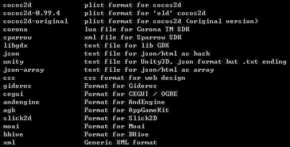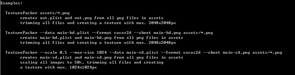 安裝TexturePacker會附帶一個command line工具,讓我們一起學習一下如何使用吧.