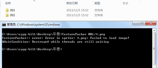 臥槽,這是什么情況啊,明明就是按照官方的示例來的嘛,google完全沒有任何答案啊,經(jīng)過一番痛苦的實驗后,終于發(fā)現(xiàn)了原因所在,這里不能輸入TexturePacker 001/*.png