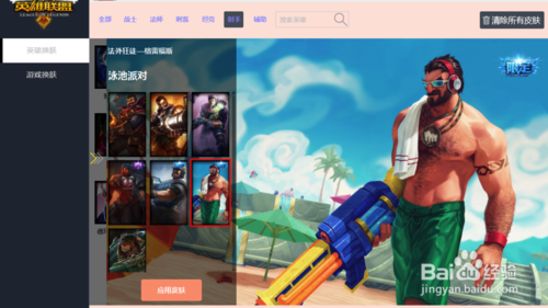 5、選定自己要玩的那款皮膚,點(diǎn)擊應(yīng)用!如圖所示!然后啟動(dòng)游戲,或者先打開游戲再應(yīng)用皮膚也是可以的!