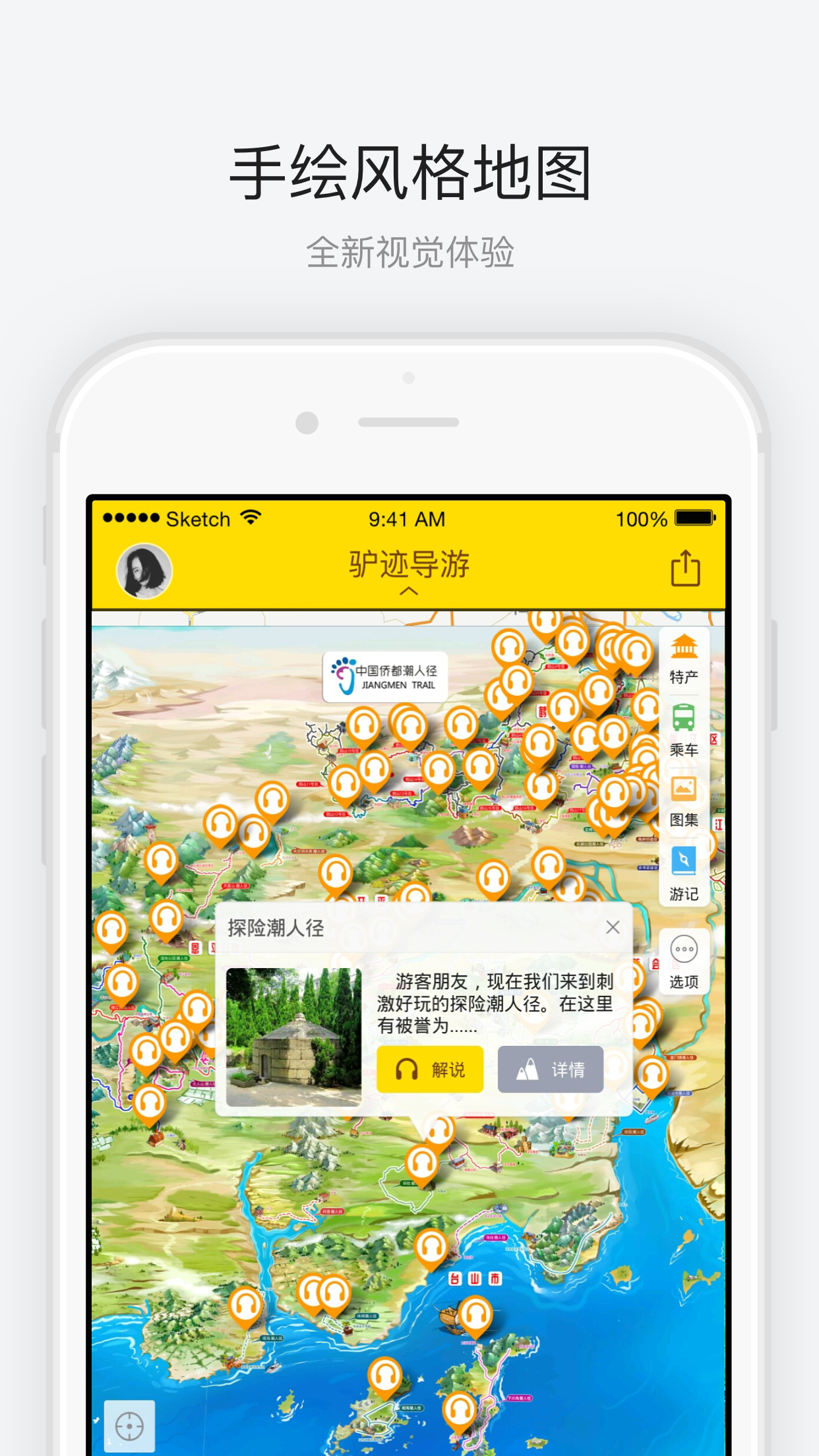 僑都潮人徑是江門市旅游局委托廣州駭特商務(wù)咨詢有限公司“驢跡導(dǎo)游”開發(fā)設(shè)計(jì)的旅游APP,僑都潮人徑:倡導(dǎo)綠色環(huán)保、自然生態(tài)、健康休閑的現(xiàn)代潮流生活,充分利用現(xiàn)有公路、村道、林道、登山小道、田園小路等線路,串聯(lián)自然保護(hù)區(qū)、風(fēng)景名勝區(qū)、歷史古跡、古村落、田園風(fēng)光等景觀節(jié)點(diǎn),帶來(lái)全新江門僑都旅游體驗(yàn)。