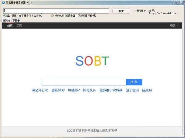 支持ed2k,BT磁力鏈,網(wǎng)站搜索,3種模式,保證能搜到你想要的資源。
