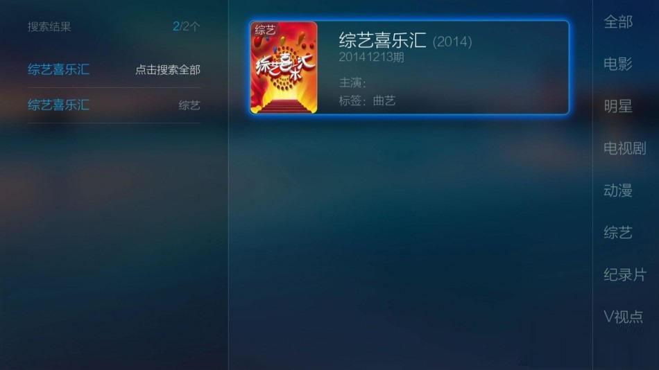 搜索支持全鍵盤和T9鍵盤兩種搜索,輸入要搜索影片的拼音首字母搜索。搜索到的視頻可以選擇屏幕上方的視頻分類篩選過濾影片。