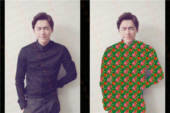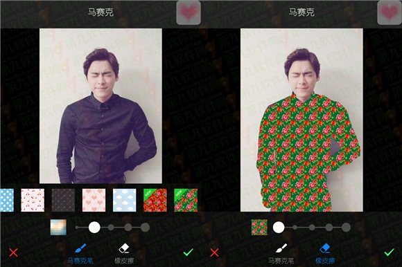 第四步、下載成功后直接選中東北大花襖圖案在峰峰的衣服上進行涂鴉,將所有原衣物覆蓋掉【可以調(diào)整馬賽克筆的大小,也可以使用橡皮擦來修改】