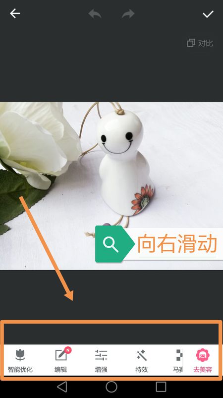5、打開圖片之后,低端的欄目向右滑動。
