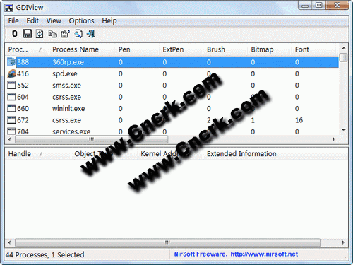 GDIView V1.06 英文綠色免費版 GDIView是一個可以列表顯示每個進程打開的GDI句柄(畫筆,筆刷,字體,位圖等)的獨特工具。它顯示了每個類型的GDI句柄的總數(shù),以及關(guān)于每個句柄的詳細信息。這個工具可以幫助開發(fā)人員追蹤他們的軟件的GDI句柄資源泄漏情況。