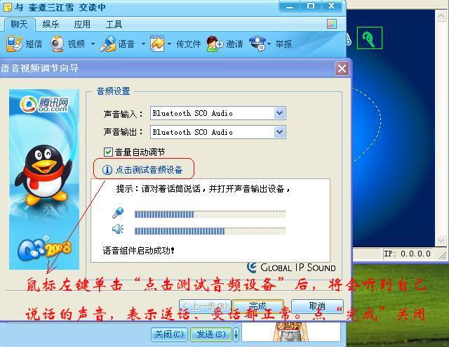 “點(diǎn)擊測試音頻設(shè)備”,你將會(huì)聽到藍(lán)牙耳機(jī)里出來你自己說話的聲音!此時(shí)就表明藍(lán)牙耳機(jī)與電腦連接成功了。