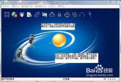 首先你的電腦得有藍(lán)牙硬件設(shè)備的支持,或者購買一個(gè)外接藍(lán)牙(網(wǎng)上有賣,很便宜),然后再用這個(gè)軟件與支持藍(lán)牙傳輸?shù)脑O(shè)備連接.