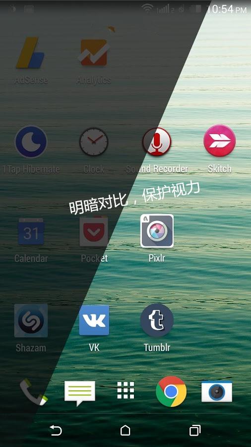 健康護(hù)眼應(yīng)用程式使用一個(gè)覆蓋過(guò)濾器,它的作用相當(dāng)于減光器,可以調(diào)低熒幕亮度保護(hù)您的眼睛不受傷害。