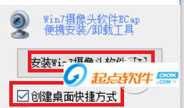 一、win7攝像頭軟件ecap怎樣創(chuàng)建桌面快捷方式?1、打開軟件,勾選創(chuàng)建桌面快捷方式,然后點(diǎn)安裝攝像頭