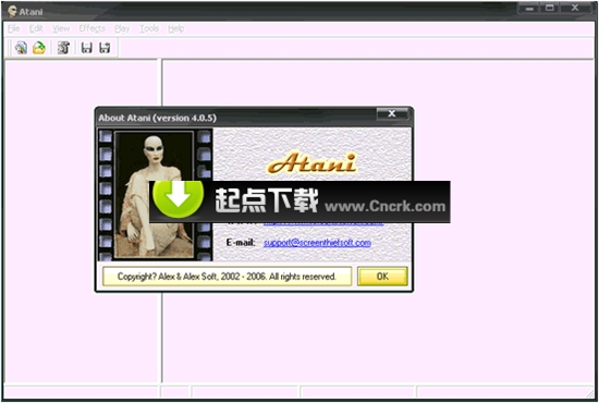 ATani V4.3.2 化綠色特別版 動(dòng)畫GIF制作軟件,制作動(dòng)畫只需五個(gè)步驟。你可以使用BMP、GIF、JPG、ICO、PNG文件作為動(dòng)畫幀。完成后可保存為GIF或AVI文件.由于綠色版無法完成注冊(cè)`所以4.3.1提供安裝版!