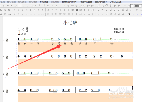 輸入歌詞,最好輸入一小節(jié)內(nèi)容,馬上把文字和音符對(duì)齊。有兩段以上,按回車鍵就可以輸入第二段。一行一行的輸入,一行一行的對(duì)齊,直到結(jié)束。方法和word差不多。