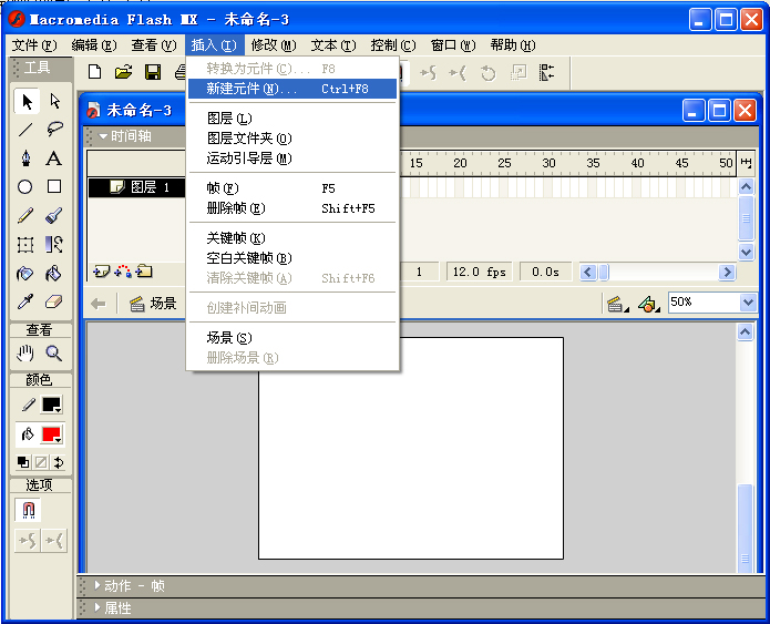 1,打開FLASH軟件:點(diǎn)插入,新建元件