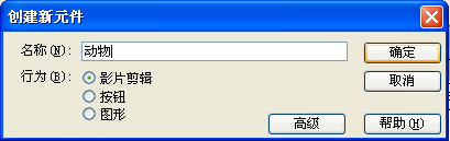2,把名稱改成"動物",行為選"影片剪輯",點(diǎn)確定。