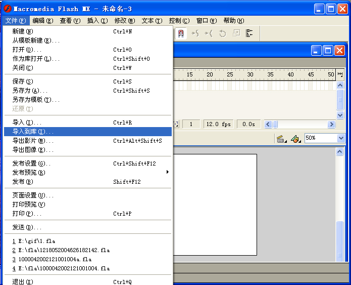 7,開始制作背景:點(diǎn)"場景1",回到場景編輯中(注意不能忘記回到場景),點(diǎn)文件。點(diǎn)"導(dǎo)入到庫"。