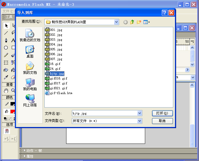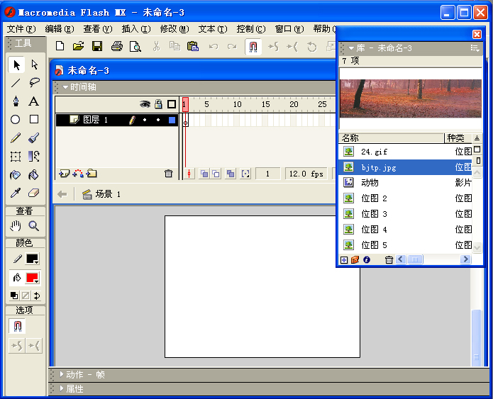 10,彈出庫窗口,在庫里找到bjtp。jpg,并點(diǎn)擊,在上側(cè)窗口出現(xiàn)畫面。