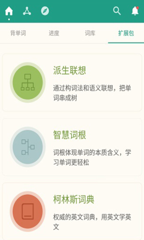 1.先進(jìn)的自適應(yīng)學(xué)習(xí)算法,系統(tǒng)能夠根據(jù)使用者的程度和復(fù)習(xí)結(jié)果,動(dòng)態(tài)調(diào)整學(xué)習(xí)材料和方式,幫助用戶從易到難循序漸進(jìn)。扇貝的主要研發(fā)者來自歐美和國內(nèi)大學(xué),在教育,心理和計(jì)算機(jī)領(lǐng)域有豐富經(jīng)驗(yàn)。2.豐富的學(xué)習(xí)資源,包含權(quán)威的例句,有趣的筆記,以及詞根詞源。這些資料和詞匯智能有機(jī)的結(jié)合,有效的促進(jìn)記憶和理解。