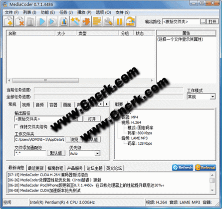 MediaCoder 32bit V0.7.5 Build 4799 多國(guó)語(yǔ)言綠色免費(fèi)版 MediaCoder 32位是一個(gè)免費(fèi)的通用音頻/視頻批量轉(zhuǎn)碼工具,由國(guó)人黃軼純開(kāi)發(fā)的自由軟件,它將眾多來(lái)自開(kāi)源社區(qū)的優(yōu)秀音頻視頻編解碼器和工具整合為一個(gè)通用的解決方案,它可以將音頻、視頻文件在各種格式之間進(jìn)行轉(zhuǎn)換