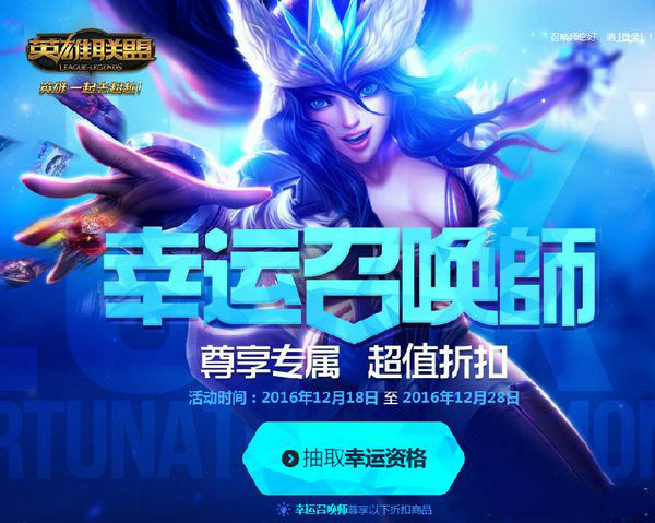 活動時間:12月18日-12月28日2016幸運(yùn)召喚師12月活動: