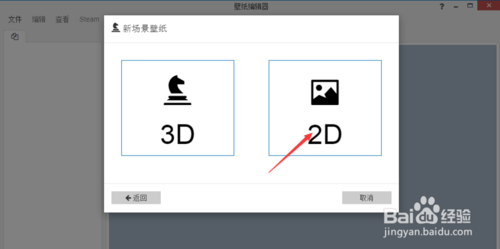 第一次自己做就先用最簡(jiǎn)單效果點(diǎn)擊第一選項(xiàng)新場(chǎng)景壁紙然后2D選項(xiàng)
