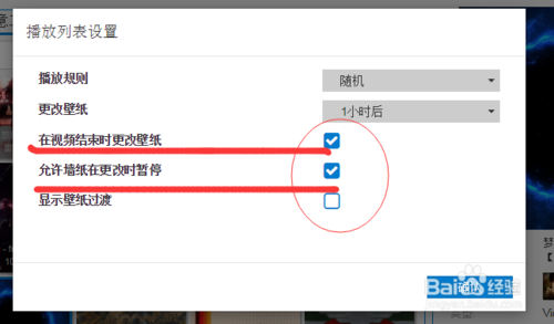 下面就是關(guān)鍵,‘在視頻結(jié)束時(shí)更改壁紙’這一選項(xiàng)一定要勾選;
