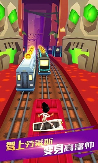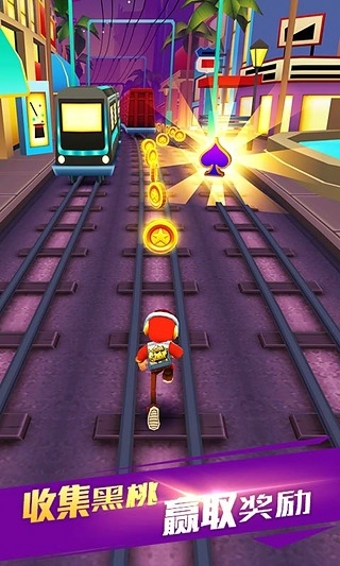 躲避迎面而來的火車!。游戲的畫面可愛精致,是一部不錯的作品。游戲還是那個男孩在跑酷,只是地方變成了紐約,同樣的玩法,不要的刺激感受,那個男孩在紐約等你喲!