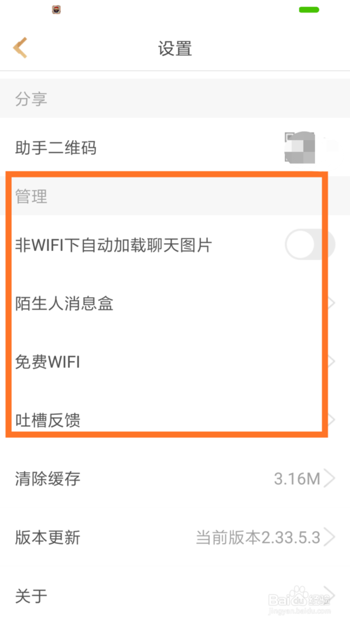 在設(shè)置的管理設(shè)置欄,我們可以看到消息設(shè)置,圖片加載設(shè)置等。