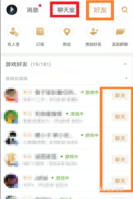 此為王者的聊天,點擊“好友”字樣選項,在這里將顯示自身所有Q玩者或微友得好友的在線及段位狀況,點擊橙色聊天就可以與他們暢說。